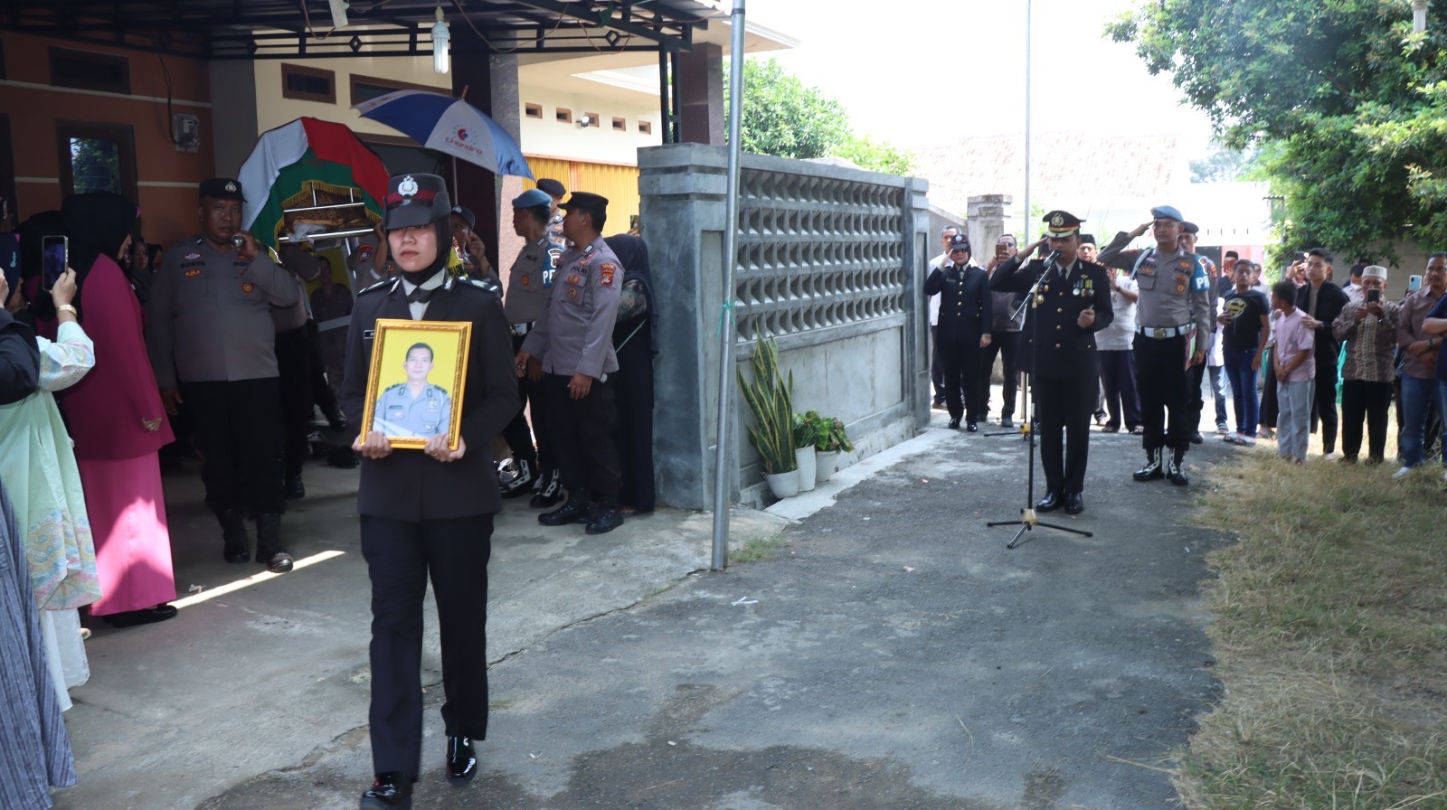 Polres Metro Polda Lampung, Polres Metro kembali kehilangan satu anggotanya, Alm. Aipda M. Ridwan anggota Si Dokkes Polres Metro, Selasa (03/09/2024). Upacara tersebut di pimpin langsung oleh Kapolres Metro AKBP Heri Sulistyo Nugroho, S.IK, M.IK dan di hadiri oleh pejabat utama Polres Metro, Kapolsek jajaran, Bhayangkari Cabang Kota Metro, dan anggota Polres Metro Polda Lampung.