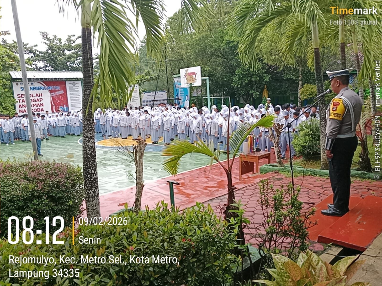 Polres Metro Polda Lampung - Dalam rangka meningkatkan kesadaran dan disiplin berlalu lintas sejak usia dini, Satuan Lalu Lintas (Satlantas) Polres Metro melaksanakan kegiatan Police Goes to School melalui sosialisasi Keamanan, Keselamatan, Ketertiban, dan Kelancaran Lalu Lintas (Kamseltibcarlantas), Senin (9/2/2026).