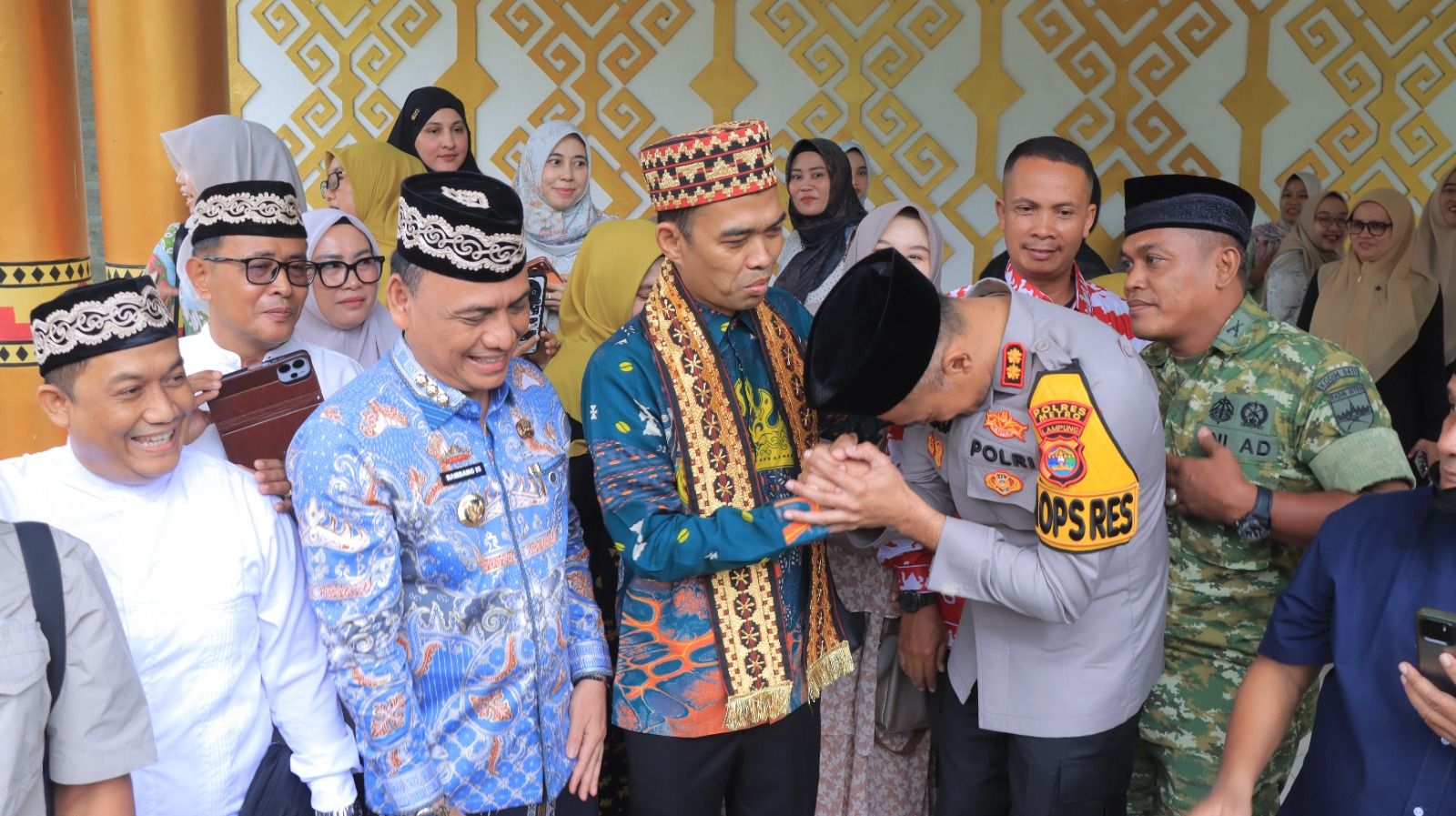 Kapolres Metro, AKBP Hangga Utama Darmawan, S.I.K., turut menyambut langsung kedatangan Ustadz Abdul Somad di Rumah Dinas Wali Kota Metro sebagai bentuk sinergitas dan dukungan terhadap kegiatan keagamaan yang disambut antusias oleh masyarakat.